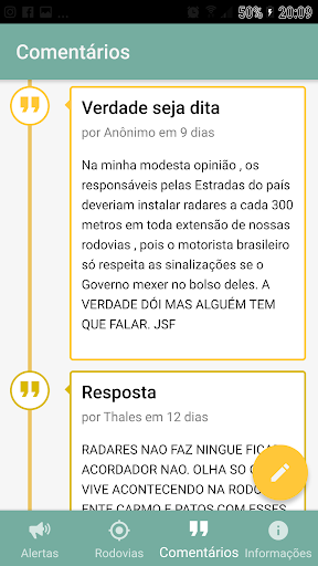 - Comentário dos usuários do aplicativo;