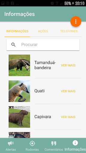 - Informações e curiosidades sobre os animais mais comumente atropelados nas rodovias; ações que devem ser tomadas mediante incidentes; telefones emergenciais disponíveis para contato direto com os órgãos responsáveis.