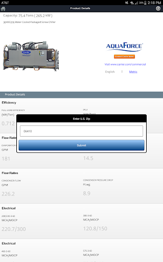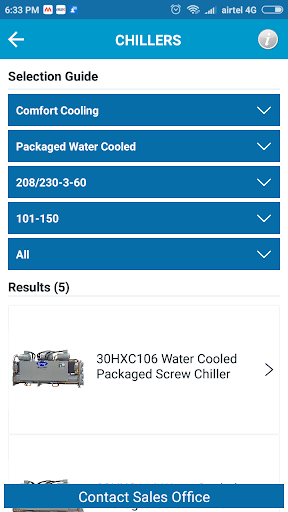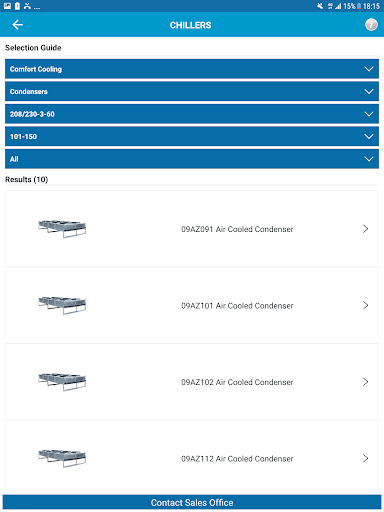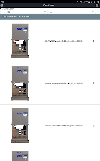 De Carrier® Chillers-app stelt klanten in staat om selectie van selectie van water- of luchtgekoelde koelmachines in te voeren.