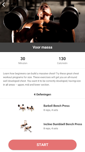 Of je het nu doet om een carrière op te bouwen als topsporter, of gewoon om er goed uit te zien, niets is zo indrukwekkend als een grote gespierde borstkas. Om je goed op weg te helpen geven we je in deze app 30 oefeningen om je borstspieren te trainen. Er zijn veel verschillende oefeningen om je borstspieren te trainen. Het is verstandig om deze oefeningen goed onder de knie te krijgen, en ze afwisselend uit te voeren. Dit is beter voor je spieropbouw en bovendien minder saai dan telkens hetzelfde doen.