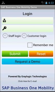 To access this demo on our Test SAP Business One Database, you need to request from the app or you can write a email to chs@graylogictech.com.