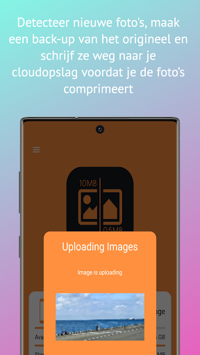 Auto Photo Compress detecteert je nieuwe gedecomprimeerde foto's automatisch, maakt een back-up van je originele foto's met hoge resolutie en stuurt ze door naar je cloudopslag voordat ze worden gecomprimeerd, zonder dat je gebruikerservaring onderbroken wordt.