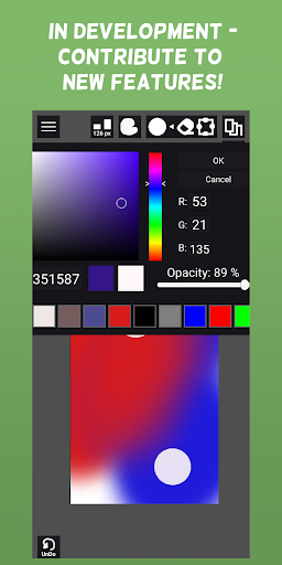 • Try to keep canvases under 1024x1024 on lower end devices. The brush engine is GPU accelerated, but majorly slows down with large canvases(with small brushes). Planning on doing some tests in other engines to compare, and will eventually get something working much faster.