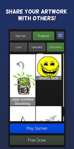 You can choose to free draw anything, or pick a topic/ or series of topics, choose optional constraints (such as time limit, color limit, or canvas size) draw it, and get points for other people correctly guessing it!