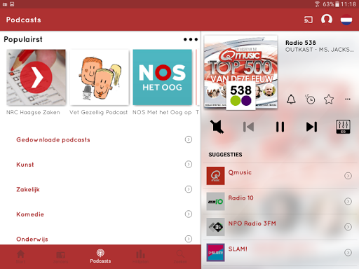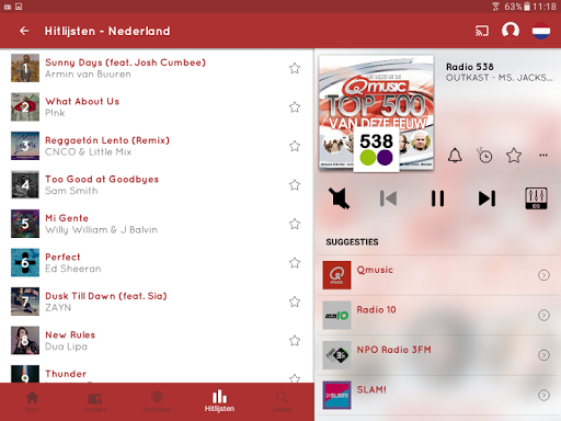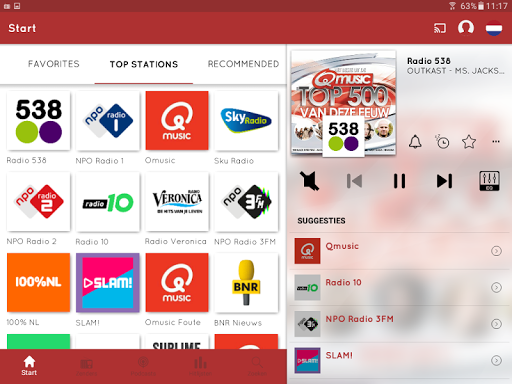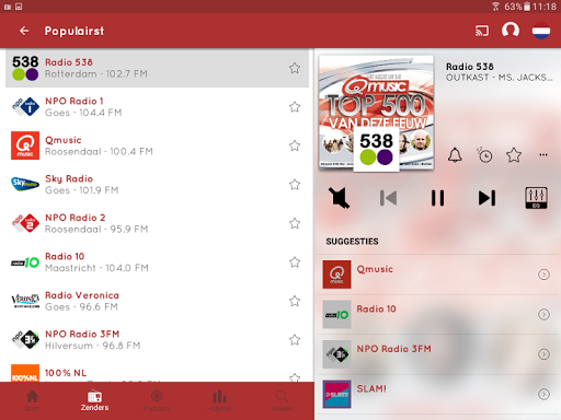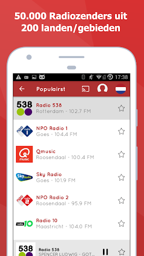 Radio 538, NPO Radio 1, NPO Radio 2, Qmusic, Sky Radio, Radio 10, Slam FM, FunX, Radio NL, Radio Veronica, 100 NL, Sublime FM, Classic FM, Arrow Classic Rock, Soul Radio, Radio Decibel, Radio Continu, Radio Nostalgia, Radio Rijnmond, NPO Radio 3FM, NPO Radio 4, NPO Radio 5, BNR Nieuws Radio, Groot Nieuws Radio, Candlelight Radio en veel meer!