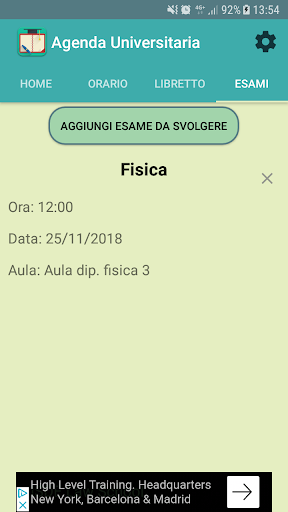 - voeg een nieuw examen toe om de dag ervoor bij activering van de melding te geven;