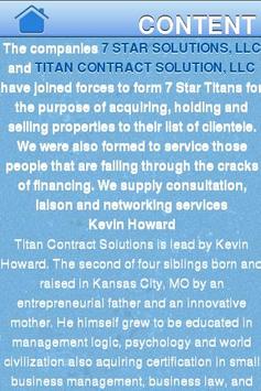 The companies 7 STAR SOLUTIONS, LLC and TITAN CONTRACT SOLUTION, LLC have joined forces to form 7 Star Titans for the purpose of acquiring, holding and selling properties to our