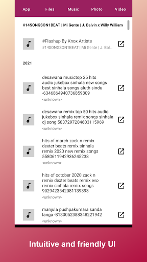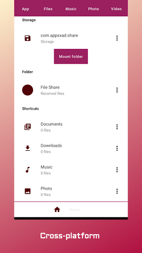 Xadshare heeft een eenvoudige, schone en gebruiksvriendelijke overdrachtsbestandeninterface. Alle bestanden worden gesorteerd in categorieën (bijvoorbeeld, muziek, apps, afbeeldingen), waardoor ze gemakkelijk te vinden zijn en delen