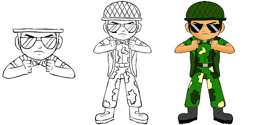 army drawing with color is the almost first drawing on play store.