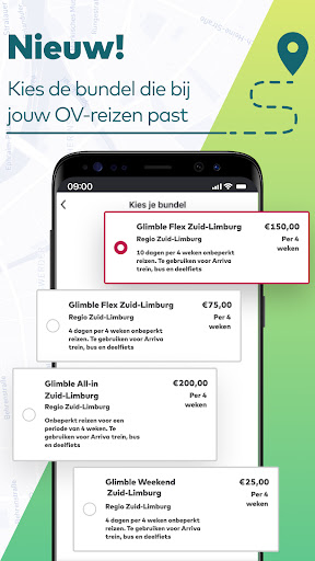 Via “In de buurt” zie je precies welke vervoersopties in jouw omgeving beschikbaar zijn, van openbaar vervoer tot aan deelfietsen, deelscooters en deelauto’s. Je hoeft dus niet langer de losse apps van alle aanbieders te checken. In glimble heb je direct het complete overzicht.