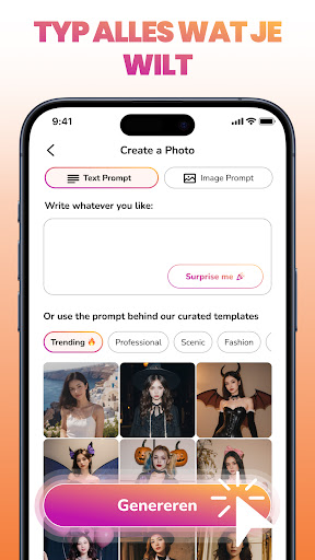 Met onze geavanceerde technologie kunt u moeiteloos onbeperkt, hyperrealistische zelffoto's maken, rechtstreeks van uw apparaat.