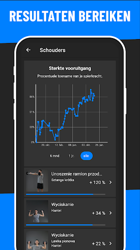 Het maakt niet uit hoe u beslist, of u nu alleen met uw lichaamsgewicht of met apparatuur werkt. De BestFIt Home App is uw persoonlijke trainer, begeleidt en motiveert u tijdens uw hele trainingsroutine en daarna. Met de slimme trainingscontrole behoren tijdrovende en klassementsproeven tot het verleden. De BestFit Home app kan de optimale gewichten al voor de eerste training voorspellen en past deze live voortdurend aan uw prestatieniveau aan.