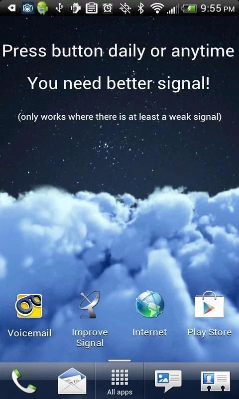 It is recommended that you click the "Improve Signal" button daily (or whenever you travel more than a few miles) to improve signal strength and connect to the strongest cellular signal possible with the Signal Booster for Android!