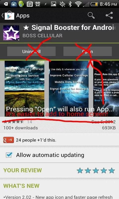 2. Add "Improve Signal" or "Boost Signal" icon to your home screen.
