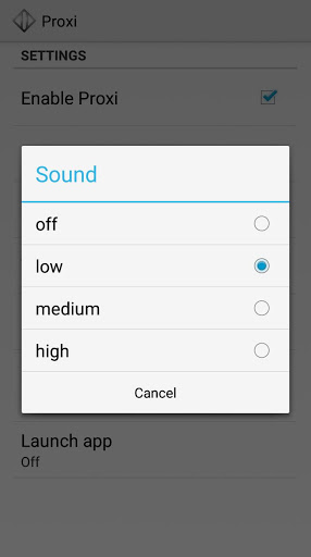 If the proximity still exists after this delay, the selected app is launched. Any non-system app can be chosen.
