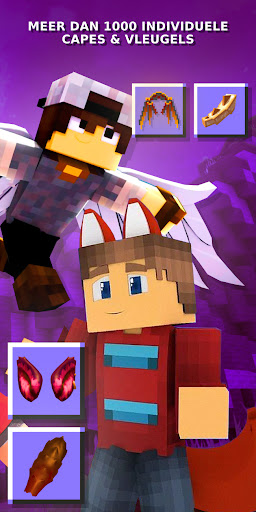 Meer dan 5000 aangepaste capes en vleugels voor Minecraft. Je kunt een superheld cape, batman cape, thor cape en vele andere opties proberen en je eigen cape ontwerpen. Elk van de capes heeft zijn eigen unieke texturen en gedrag, uitstekende animaties en graphics.