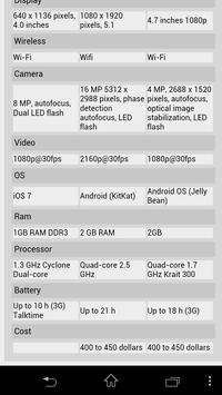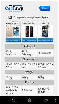 The CellFawn Phone Comparison app is the perfect tool to compare smartphone or tablet specifications side by side. Compare tablets as well as the 700 phones we have in our database. The app doesn't simply splatter the info on to your screens, rather displays it in an orderly and neat manner for you to get a clear grasp of which phone or tablet is best for you.