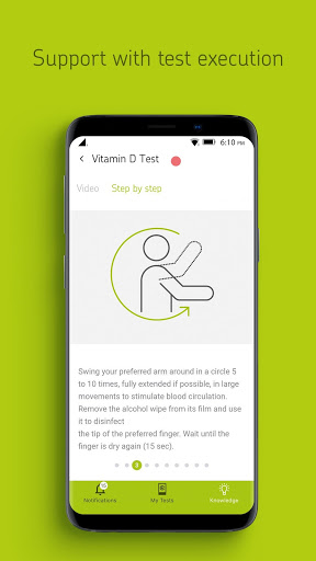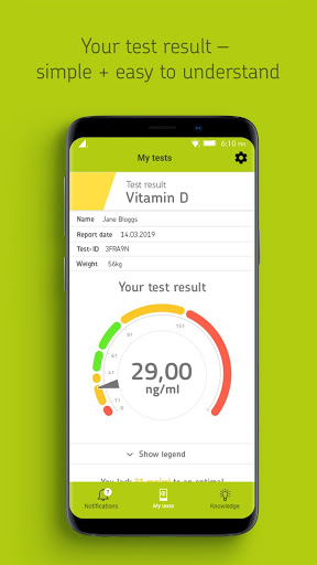 De Cerascreen-app ondersteunt u met uw gezondheidsbewuste levensstijl en leidt u door het volledige testproces: u activeert uw CERASCREEN® Test via de app met de test-ID en ontvang updates over de status van het ingediende monster rechtstreeks vanuit ons laboratorium. Na de succesvolle evaluatie van het monster in het gecertificeerde gespecialiseerde laboratorium hebt u rechtstreeks toegang tot uw testresultaat in de app. De gemeten waarden worden aan u uitgelegd op een manier die eenvoudig te begrijpen is. Op basis van uw gemeten niveau ontvangt u ook aanbevelingen voor verdere actie en waardevolle informatie over voeding, lichaamsbeweging en gezondheid.