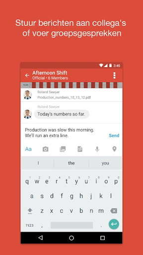 • Het uitwisselen van berichten tussen collega's en groepen is veilig