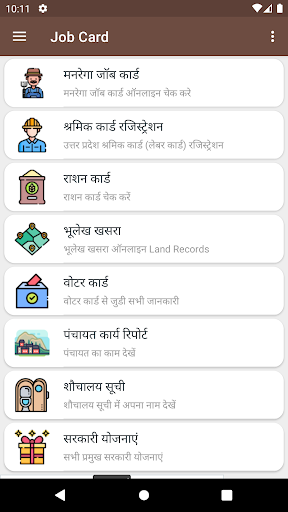 Job Card List Mnrega-app draait alles om de details van de taakkaart van Manrega-leden. Hier kan de gebruiker hun taakkaarten, hun servicegeschiedenis, betalingsgegevens en nog veel meer controleren. In deze app kun je ook vele overheidsregelingen controleren van Central Gov, Arbeidsregistratie Solliciteer online Get Arbeidskaart, BPL Rantsoeningskaart Info, State-Wise Land Records, Bhulekh, Khesra, Khatian Info, All India Voterlijst online, Panchayat Werkverslag, Toiletlijst (Sauchalay suchi) en nog veel meer.