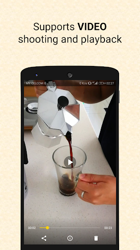Share your photos to any other apps as how you usually do. All photos taken are registered in Media Store, so you can find them from other apps as well!