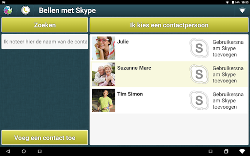 Elementique Senior Contacten : Vind al je contacten in de map. Als u wilt, is het mogelijk om verschillende gebruikersaccounts te maken (elk zijn contacten, elke e-mail), of om toegang te geven tot uw Gmail-account aan een geliefde die u op afstand kan helpen.