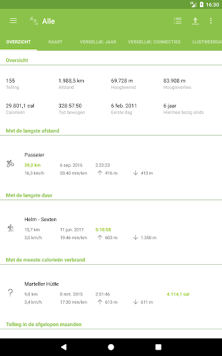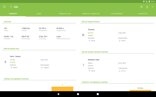 - Weergave van de activiteiten met de langste afstand, duur en met het hoogste calorieverbruik