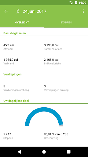- Lijst van dagelijkse stappen met gedetailleerde weergave