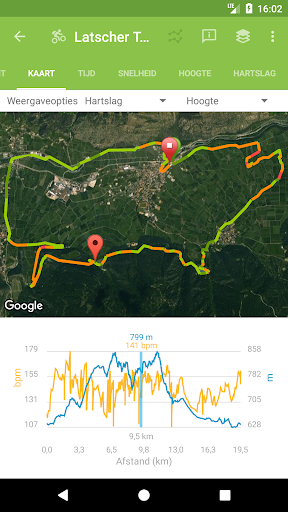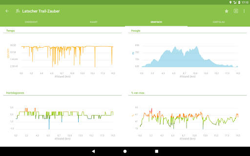 - Verschillende grafieken over snelheid, hartslag, hoogte, etc.