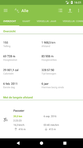 - Overzicht met een samenvatting van de totale afstand, duur, enz.