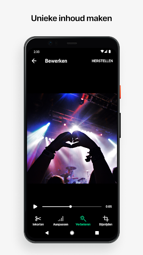 Gebruik intuïtieve tools om je foto's en video's te bewerken. Je kunt foto's en video's gemakkelijk bijsnijden, inkorten, recht maken, de belichting ervan aanpassen en er verbeteringen aan toevoegen.