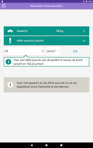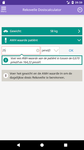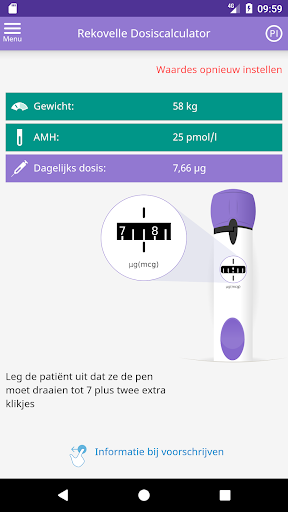 De Rekovelle® dosiscalculator is bedoeld om alleen door beroepsbeoefenaren in de gezondheidszorg te worden gebruikt om de geïndividualiseerde dagelijkse dosis van het geneesmiddel Rekovelle® (follitropine delta) te berekenen. De Rekovelle® dosiscalculator kan een medisch hulpmiddel zijn volgens uw plaatselijke voorschriften.
