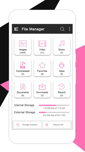 By default, File Manager Explorer allows you to copy, move, rename, delete or share files to and from any of your storages. It also lets you browse and access your files by category.