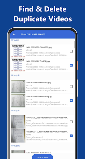 Duplicate File Remover: Delete Duplicate Photos, Videos & Files can help you find duplicate images, audio files, videos and so on, on your Android device and remove them instantly. The app allows you to free up space on your mobile in just a few clicks. Delete a single file or multiple files and preview them before deletion. There is no deletion limit; remove as many files as you find with the