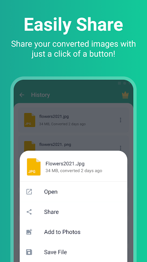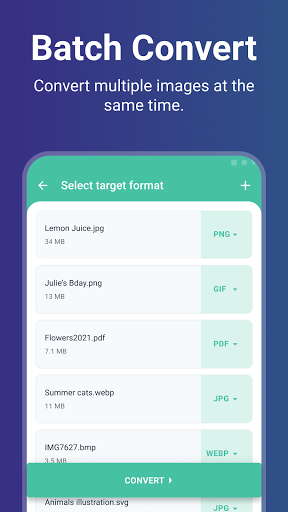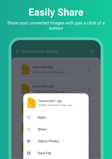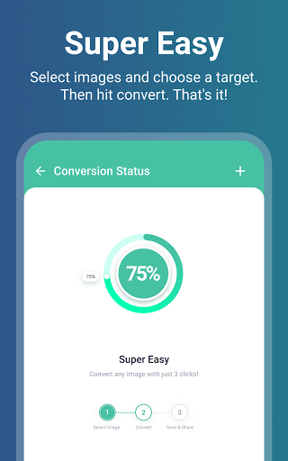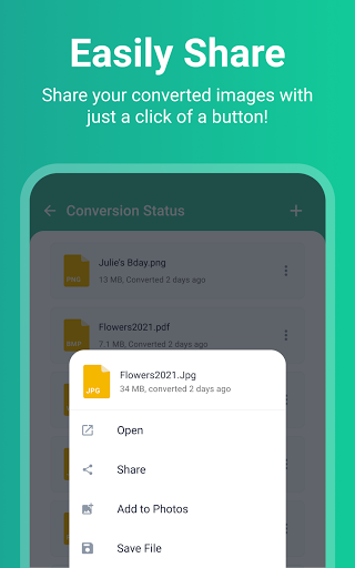 Selecteer een afbeelding in uw telefoon en kies een doelformaat.Klik vervolgens op Converteren!Het is zo simpel.Na conversie kunt u eenvoudig uw foto's delen met vrienden.