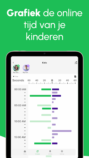 Wil je er zeker van zijn dat je kinderen veilig zijn? Of wil je bepalen hoeveel tijd ze besteden aan berichten-apps? Volg hun online/offline activiteiten in realtime met pushmeldingen.