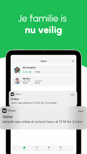 - Ontvang direct meldingen wanneer uw gezin online gaat