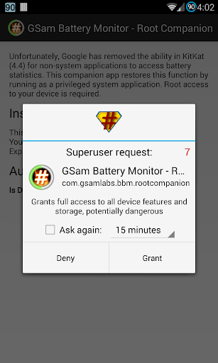 • Als u GSAM-batterijmonitor op Kitkat gebruikt ( 4.4) of later, en de app informeert u dat het geen batterijstatistieken kan ophalen, moet u deze app installeren.