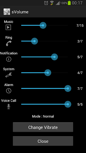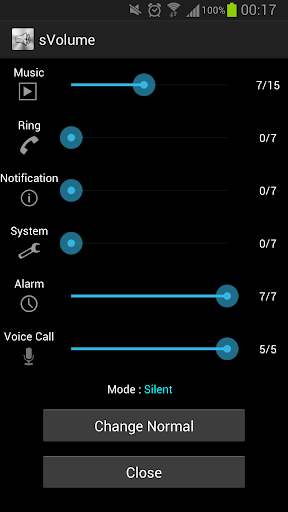 This is the simple application to setting the volume. I can set the volume music, incoming call, notification on one screen, system, alarm, call. I can also switch between silent and silent mode.