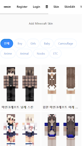 Installeer Minecraft Skin en ontmoet een verscheidenheid aan Minecraft Character Skins. Als de app niet goed werkt, klikt u op de onderstaande link. http://minecraftcharacter.com/bbs/board.php?bo_table= Minecraftskin