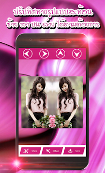 Mirror Image Photo Editor allows you to create mirror effect in your photos. You can create left-right, up-down, reflection, repeating as well as reflection style enabled photos with this photo editor app