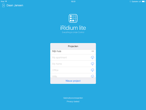 Als je project klaar is, wordt het opgeslagen in de iRidium Cloud en is het voor je beschikbaar. Ook toekomstige updates van je project worden gedaan via de Cloud.