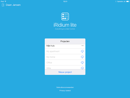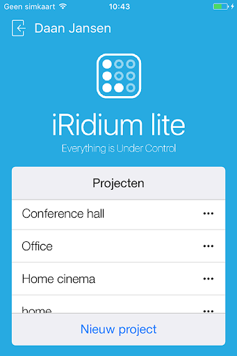 Na installatie van de i3 lite app, werkt deze in demo-modus. Je kunt dan dus nog niet je huis of kantoor besturen. Als je dat wilt, neem je contact op met een installateur. De lijst met iRidium installateurs kun je vinden op onze website: https://iridi.com/find-a-dealer//