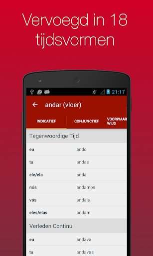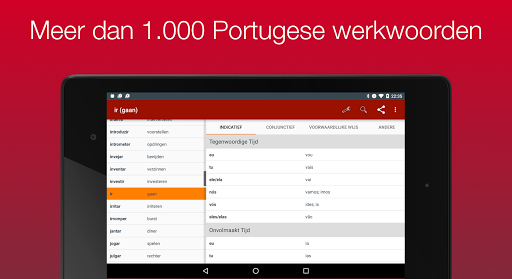 Bekijk bijna 1000 werkwoorden in 20 werkwoordstijden. Met eenvoudige navigatie en ingebouwde zoeken, kunt u het werkwoord moet je in enkele seconden vinden.