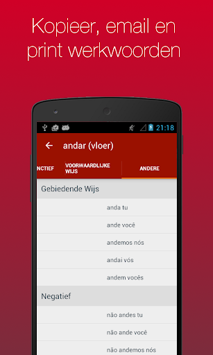 ● Inclusief de mogelijkheid om werkwoordsvervoegingen te kopiëren, e-mailen en sms-en.