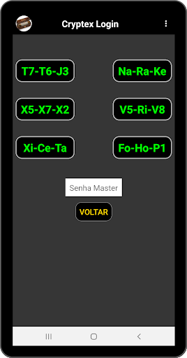 Het hoofdwachtwoord is het enige wachtwoord dat u nodig hebt om te onthouden, het staat voorop voor toegang tot de app en de configuratie ervan. Onthoud het of bewaar op een veilige plaats. Voor snellere toegang tot het systeem creëren we een alternatieve methode die wordt gegeven via syllabisch token dat wordt gegenereerd door het systeem. Dit token heeft een enkele functie, zorgt voor snelle toegang tot de app Cryptex-wachtwoorden. Dit syllabische token, wordt gegenereerd door de app te registreren en kan worden hersteld of gewijzigd in het menu App instellingen.