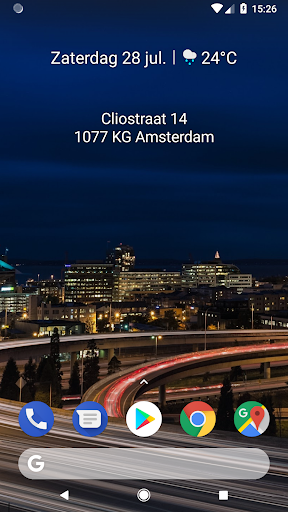 Deze widget toont het dichtstbijzijnde adres. Dit kan het adres zijn naast uw huidige locatie. Om widget uit te rekken, widget vasthouden en naar dezelfde plaats verplaatsen. Sleep vervolgens de linker- of rechterpunt naar links of rechts.