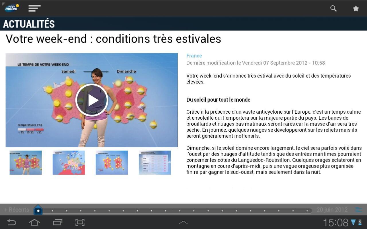 Après le succès de l’application La Chaîne Météo sur mobiles, METEO CONSULT vous propose gratuitement l’application la Chaîne Météo pour Tablette avec ses prévisions élaborées et contrôlées par des météorologues expérimentés.