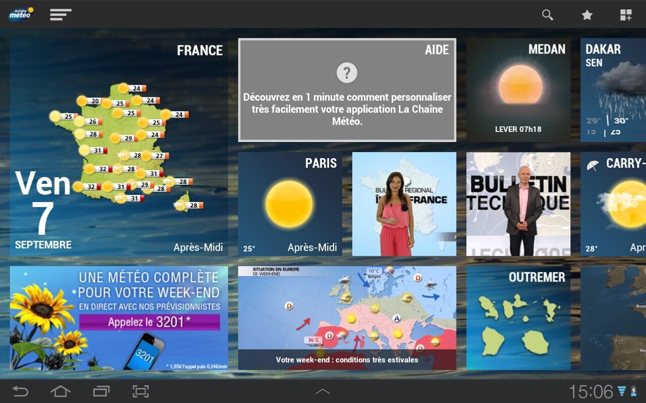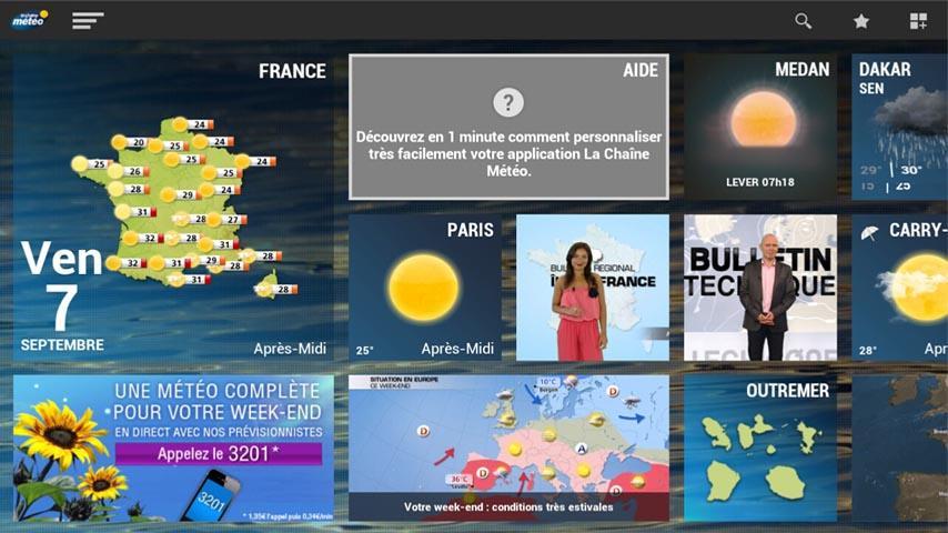 L’application La Chaîne Météo Tablette vous offre une nouvelle expérience de la météo, grâce à une ergonomie novatrice, et des prévisions complètes sur la France, les territoires d’Outre-Mer, l’Europe et le monde.