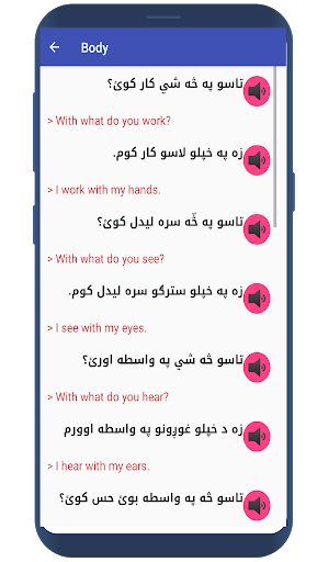 De effectieve methoden worden gebruikt in deze app, u zult gemakkelijk Engels leren in Pashto via deze gratis app.Spreken, begripvol, vocabulaire en grammatica, je leert Engels in Pashto-taal.